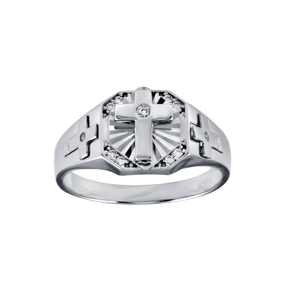 Embrace timeless style with this stunning 11.6mm 925 sterling silver cross ring, adorned with shimmering cubic zirconia stones. The sleek silver band beautifully frames the delicate cross design, offering a graceful blend of faith and fashion. Perfect for everyday elegance or special occasions, this sparkling ring adds a radiant touch to any look while capturing the essence of sophistication and charm.